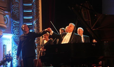 | Nhạc trưởng Lior Shambadal cảm ơn pianist vì màn trình diễn rất thành công |