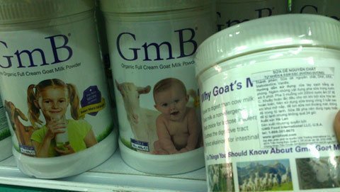 Tại siêu thị Medicare nằm trên đường Đinh Tiên Hoàng (Q.Bình Thạnh), tất cả sản phẩm sữa dê nhãn hiệu GmB bày bán trên kệ đều được đóng trong hộp nhựa trọng lượng 425g. Bao bì sản phẩm được in hoàn toàn bằng tiếng Anh và được dán thêm một nhãn phụ bằng tiếng Việt, ghi rõ “Xuất xứ Hà Lan”. Tương tự, sữa dê GmB bán tại một hệ thống siêu thị hàng tiêu dùng có thương hiệu tại TP.HCM cũng đề thông tin xuất xứ từ Hà Lan trên nhãn phụ bằng tiếng Việt.