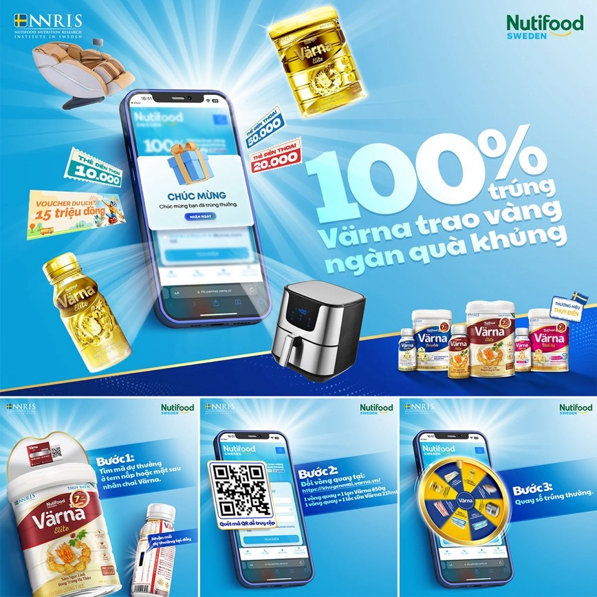 Đại diện Värna chia sẻ: “Chúng tôi tin rằng để sống vui vẻ ở bất kỳ độ tuổi nào, bên cạnh nền tảng sức khỏe thể chất tốt là một tinh thần tràn đầy năng lượng tích cực. Từ phương châm đó, Värna mang đến chương trình khuyến mãi lớn nhất năm 2023 với hơn 400.000 giải thưởng hấp dẫn, tổng giá trị lên đến gần 7 tỷ đồng. Đây chính là cách mà Värna lan toả thêm nhiều niềm vui, đồng thời khuyến khích người trưởng thành Việt sử dụng những sản phẩm dinh dưỡng cao cấp và chất lượng để chăm sóc sức khỏe thể chất mỗi ngày”.