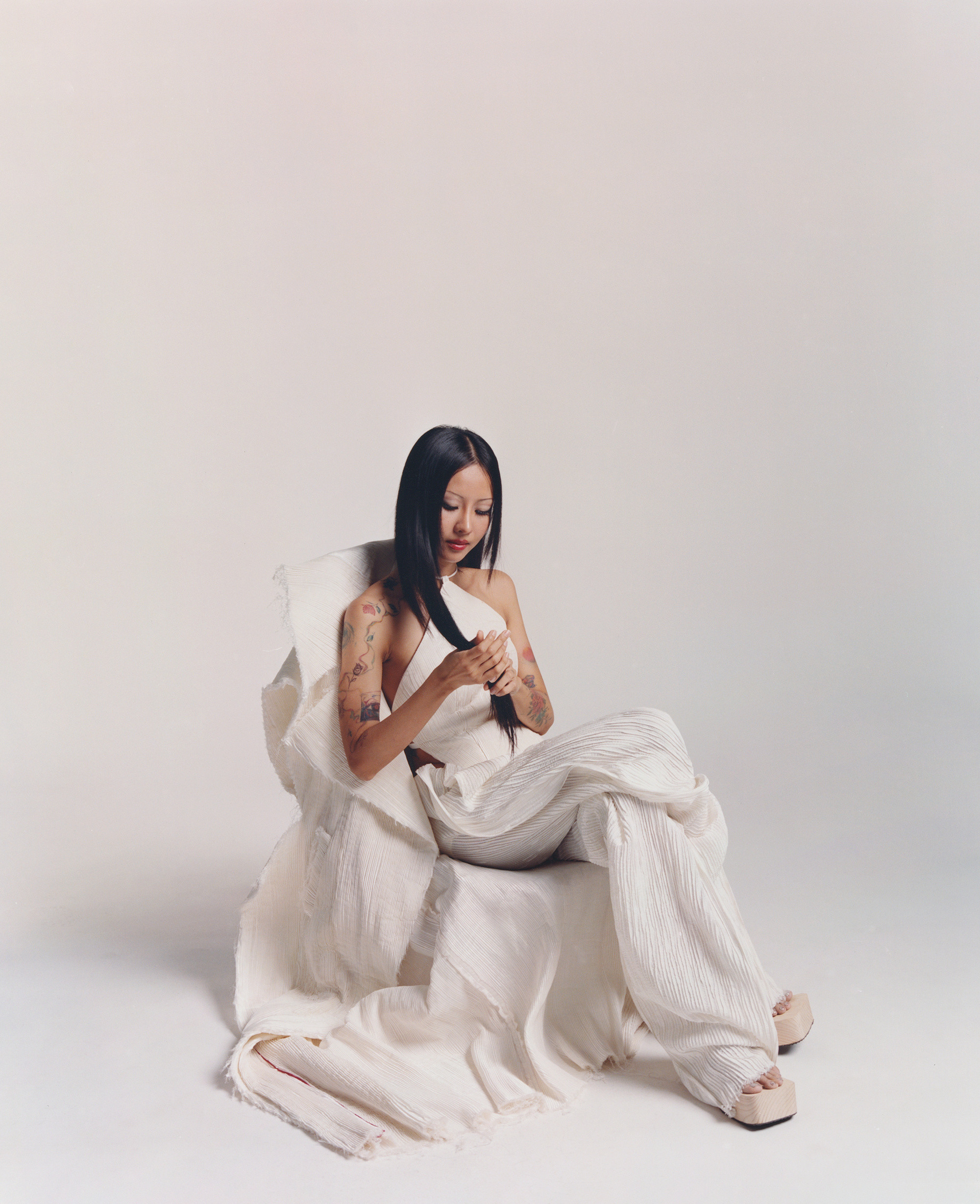 Trong bộ sưu tập lấy cảm hứng từ 'Hòn vọng phu', rapper Suboi mượn thời trang để tôn vinh sự hy sinh thầm lặng, cao cả của người phụ nữ.