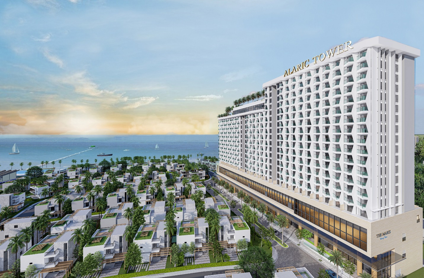 | Alaric Tower - tòa tháp căn hộ du lịch nằm trong dự án quần thể nghỉ dưỡng The Maris Vũng Tàu - một sản phẩm của TDG Group. |