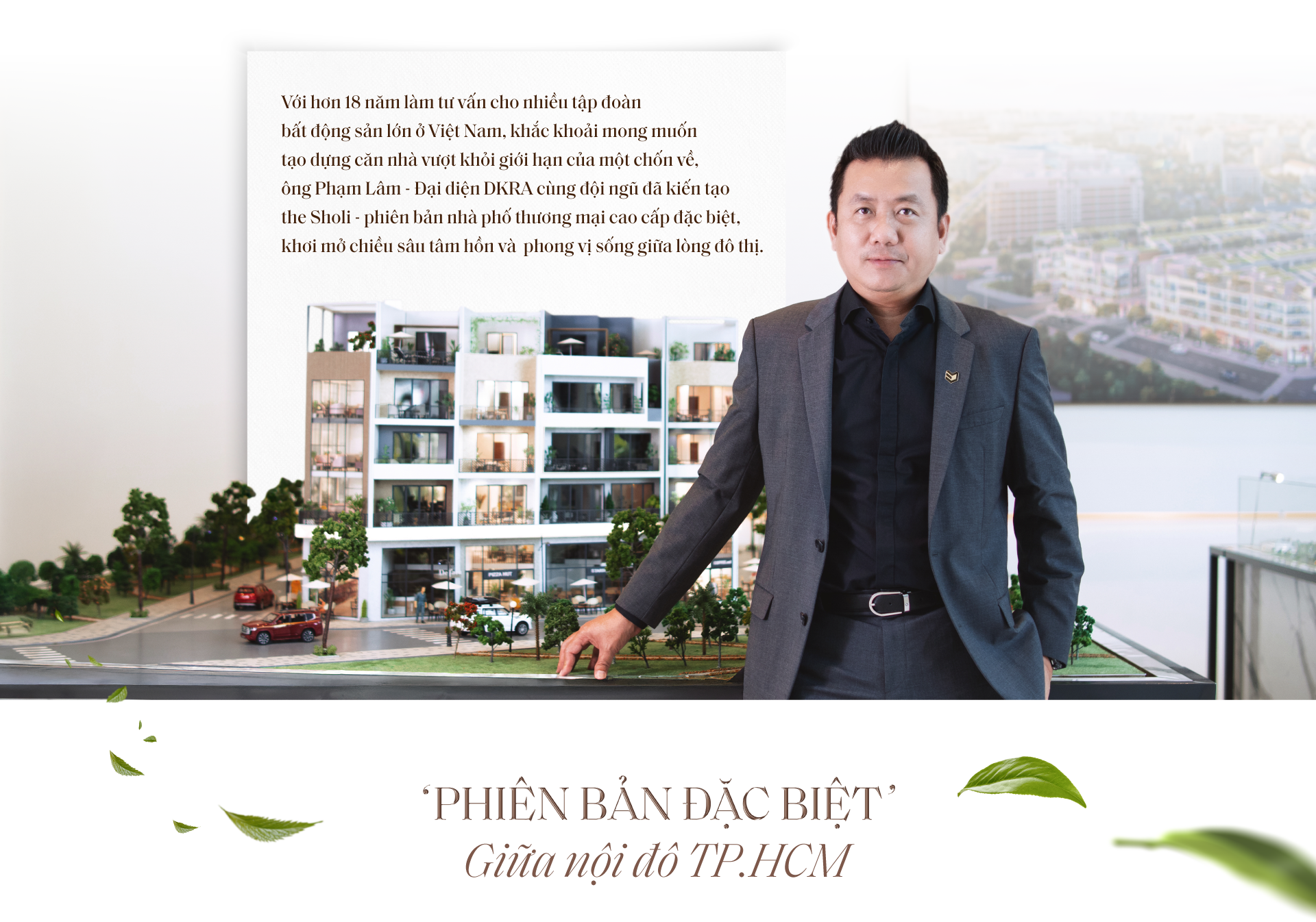 “Chúng tôi hoàn toàn có thể lựa chọn hướng đi an toàn, phát triển tổ hợp theo những công thức bất biến, dễ tiếp cận thị trường. Nhưng khi bắt tay nghiên cứu the Sholi, chúng tôi nhận ra nơi đây hội tụ đầy đủ “tố chất” để trở thành tuyệt tác bất động sản đô thị - biểu tượng nhịp sống phồn vinh của khu Tây. Chính điều đó đã thôi thúc đội ngũ DKRA và các chuyên gia suy ngẫm, tìm kiếm hướng đi khác biệt bằng những giải pháp mang tính đột phá, xứng tầm với vị trí đặc biệt của tổ hợp”, ông Phạm Lâm nhấn mạnh.