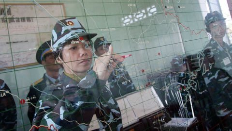Những người lính pháo thủ đang xác định mục tiêu