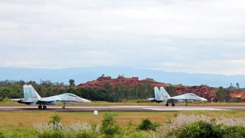 Máy bay Su 27 của Trung đoàn 940, Sư đoàn 372 diễn tập với lực lượng bộ binh Quân khu 4