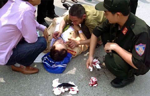 Trung tá Nguyễn Đức Chung đổ máu khi đang làm nhiệm vụ