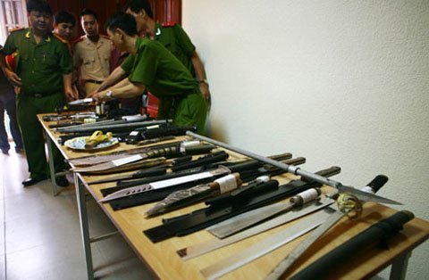 Khi phát hiện đối tượng chuẩn bị sử dụng hung khí để chống trả, một CSGT đã giật được chiếc túi trên tay y, cùng lúc CSHS, CSCĐ quật ngã đối tượng.