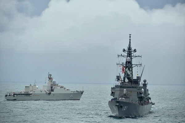 Tàu hộ vệ Đinh Tiên Hoàng vào tuần trước đã cùng tàu sân bay trực thăng JS Kaga và khu trục hạm JS Murasame của Nhật Bản diễn tập ở ngoài khơi Cam Ranh.