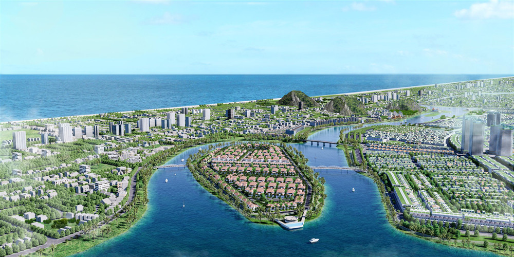 Tâm điểm của quần thể này là Sunneva Island - “đảo Ánh Dương” với các biệt thự đảo cao cấp, biệt lập nhưng vẫn dễ dàng kết nối với các khu vực lân cận nhờ hệ thống cầu hiện đại. Khu đô thị có quy mô 26ha, sở hữu vị trí phong thuỷ độc đáo trên đảo Đồng Nò với 4 mặt giáp sông Cổ Cò, sông Hàn và sông Đô Tỏa, ôm trọn tầm view khoáng đạt, hữu tình hướng về núi Ngũ Hành Sơn.