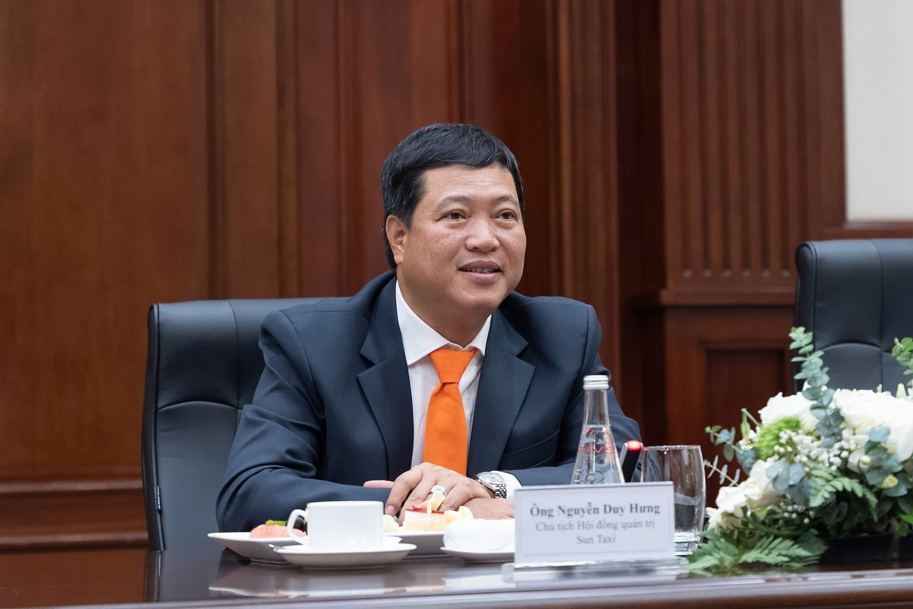 Phát biểu tại lễ ký kết, ông Nguyễn Duy Hưng - Chủ tịch HĐQT Công ty Cổ phần Sun Taxi cho biết: “Xe điện đang là xu thế chung của thế giới và các doanh nghiệp Việt Nam không thể đứng ngoài cuộc. Là một doanh nghiệp kinh doanh dịch vụ taxi nhiều năm, qua quá trình trải nghiệm và vận hành thử, Sun Taxi nhận thấy những điểm ưu việt của xe điện so với xe xăng như giúp tối ưu số lượng nhân sự vận hành, giúp tài xế điều khiển xe an toàn và thuận tiện hơn, đồng thời tiết kiệm đáng kể chi phí bảo trì, bảo dưỡng. Không những vậy, xe điện còn mang tới trải nghiệm khác biệt cho khách hàng với các ưu điểm không mùi, không ồn, không khí thải. Với tiêu chí An toàn - Ân cần - Chất lượng trong phục vụ, Sun Taxi hy vọng việc hợp tác với VinFast đưa xe điện vào cung cấp dịch vụ taxi sẽ mang đến giá trị vượt trội cho khách hàng và cộng đồng”.