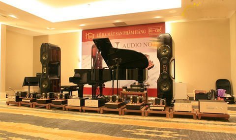 Trong đó, cặp loa Grand Exquisite Mini Limited Signature của nhà sản xuất Kharma Audio tới từ Hà Lan giá tham khảo lên tới hơn 187.300 USD, được đánh cặp với hai cặp ampli công suất monoblock Audio Note Kondo Gakuon-II tới từ Nhật với giá 177.000 mỗi cặp.