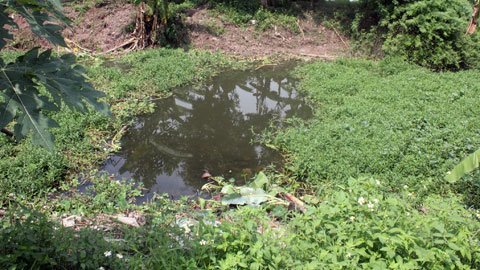 Theo quan sát, hồ câu Viễn Thổ cách mương nước tưới tiêu chừng 100m.