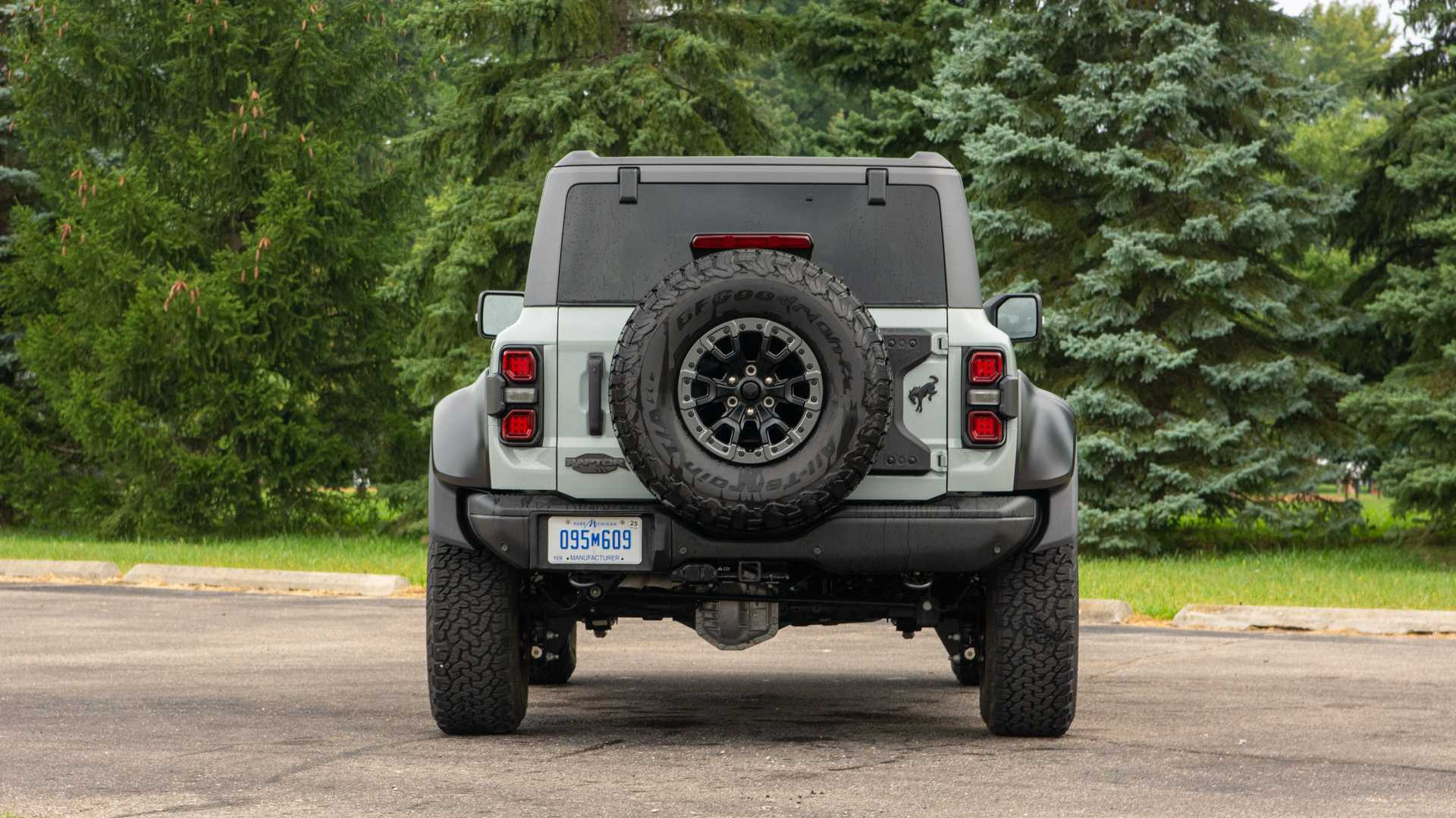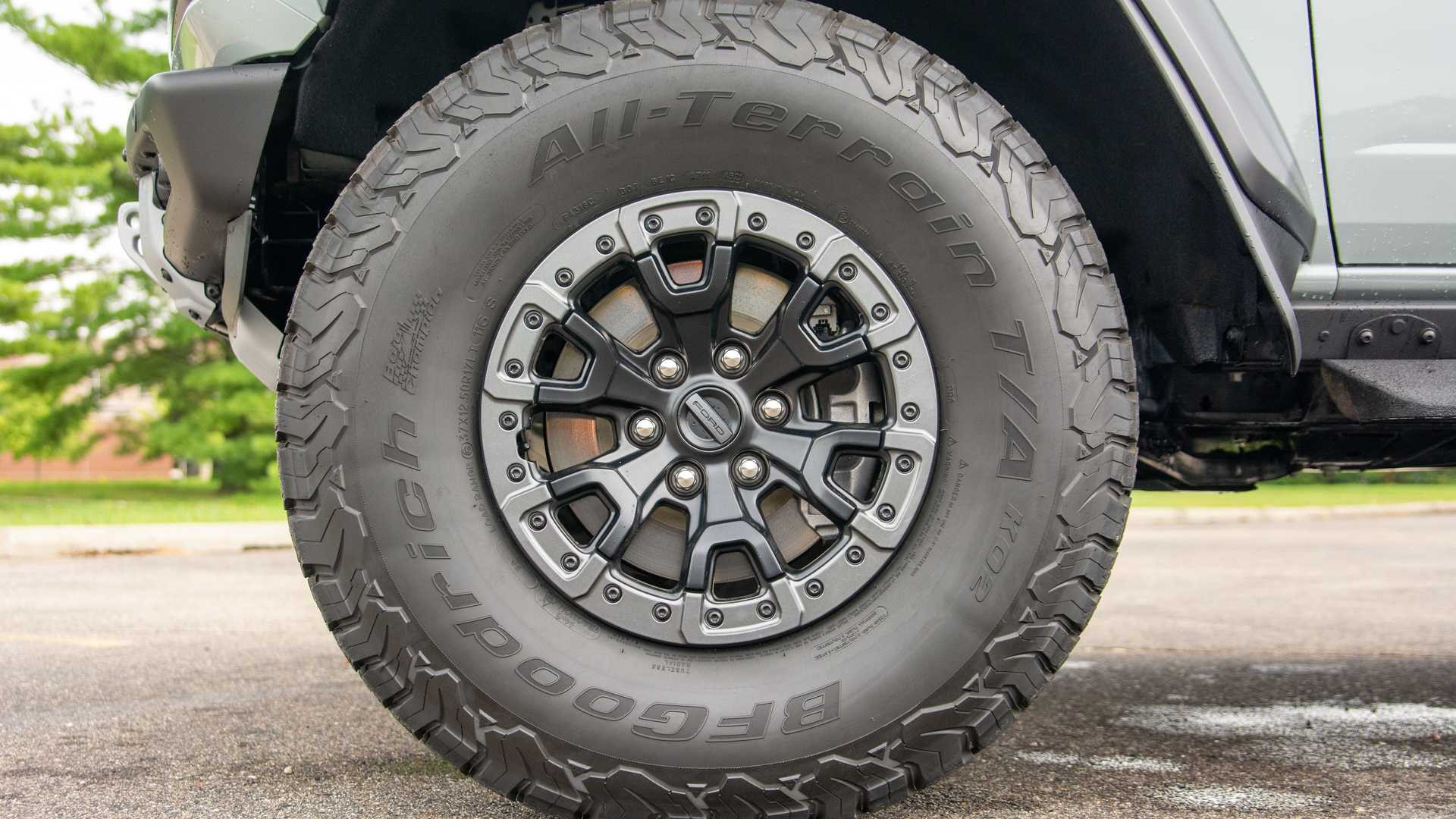 Ngoài thiết kế đậm chất “bụi bặm” đặc trưng của dòng SUV off-road, Ford Bronco Raptor còn nổi bật nhờ hệ thống treo ứng dụng công nghệ từ các giải đua rally, kết hợp với giảm xóc bán chủ động Fox tương tự như trên mẫu bán tải F-150 Raptor. Xe có khoảng sáng gầm lên tới 333 mm, giúp dễ dàng chinh phục mọi dạng địa hình phức tạp. Đi kèm bộ mâm 17 inch là lốp địa hình BFGoodrich K02 cỡ lớn, đường kính lên tới 37 inch, mang lại khả năng vận hành vượt trội khi off-road.