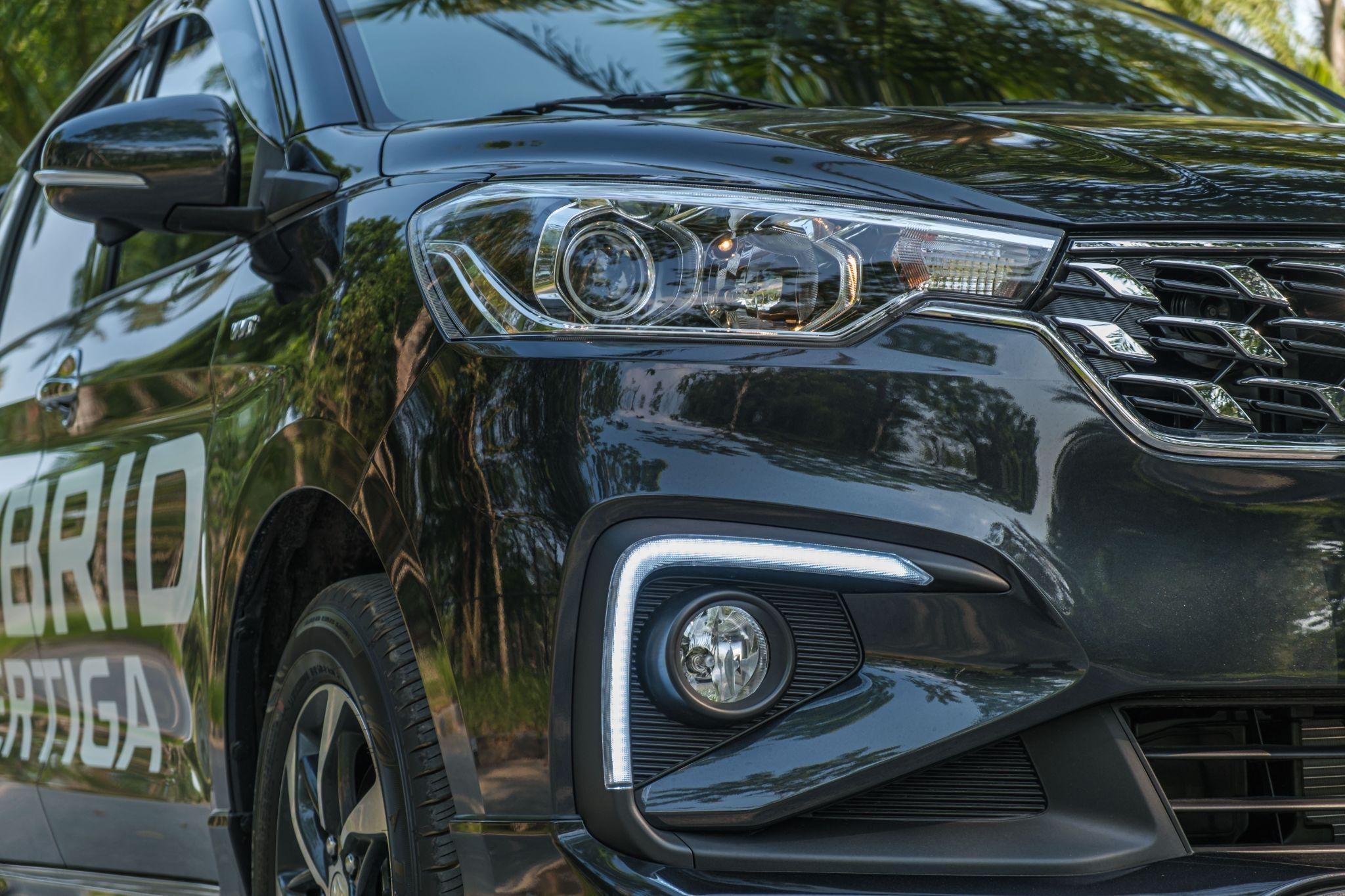 Về thẩm mỹ và kích thước, Suzuki Hybrid Ertiga sở hữu lưới tản nhiệt với họa tiết mới, có thêm các lựa chọn phụ kiện thẩm mỹ như dải đèn LED ban ngày ở khu vực đèn sương mù.