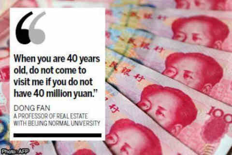 Ông Dong Fan - giảng viên giảng dạy môn bất động sản tại trường ĐH Chuẩn Bắc Kinh thấy thật hổ thẹn nếu có sinh viên không gây dựng được số tài sản 40 triệu NDT (khoảng 7,7 triệu đôla) khi bước qua tuổi 40.