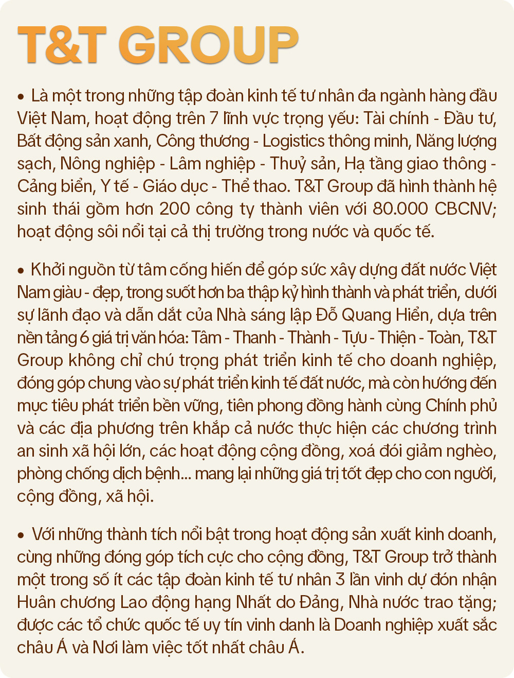 Có thể thấy, thay vì chỉ đầu tư vào một phân khúc BĐS, T&T Group đang mở rộng tham vọng hướng tới phát triển một hệ sinh thái BĐS đồng bộ, từ nhà ở, khu đô thị, văn phòng, thương mại, khu dịch vụ du lịch, khách sạn nghỉ dưỡng, sân golf cho tới cụm công nghiệp, cảng cạn logistics, sân bay và tổ hợp công nghiệp hàng không, tổ hợp năng lượng tái tạo... Hướng đi này của bầu Hiển có thể sẽ mất nhiều thời gian và công sức hơn so với việc “xây và bán”, song lại rất nhất quán với tinh thần “đã không làm thì thôi, nhưng khi làm thì phải tiên phong và tạo xu hướng phát triển bền vững”.