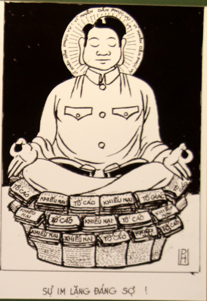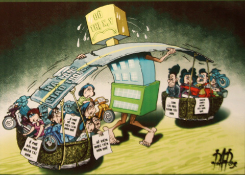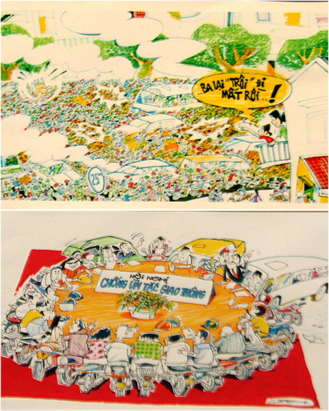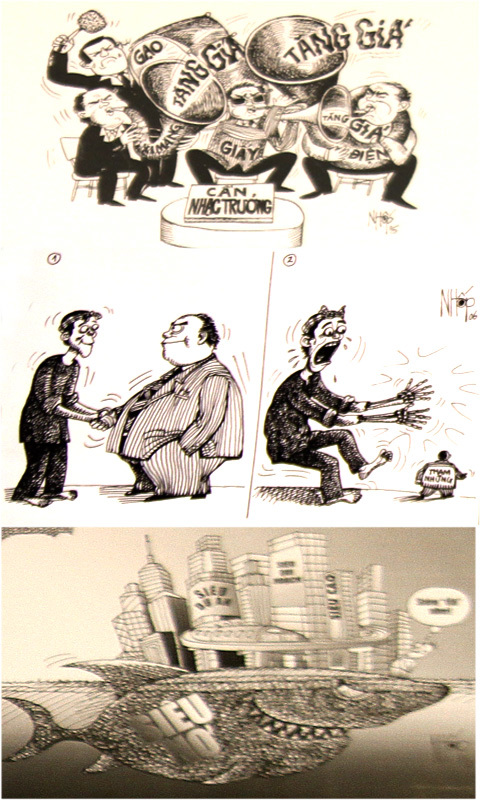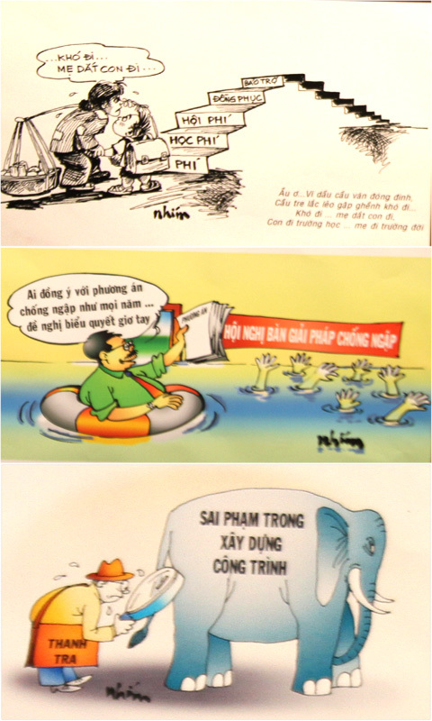 Xin gửi tới độc giả những bức tranh biếm họa thú vị của các họa sĩ đương thời thu hút nhất tại triển lãm. Chùm tranh biếm họa của họa sĩ Phạm Tân Phú:
