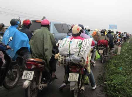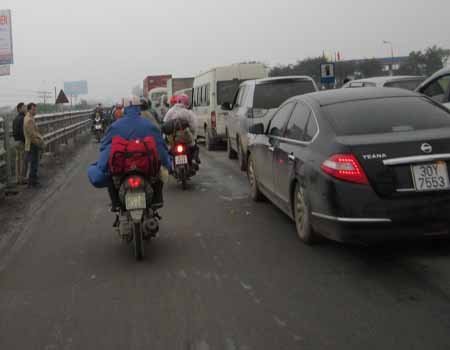 Do nhu cầu đi lại đầu năm, khoảng từ đầu giờ chiều 28-1, các loại phương tiện lưu thông trên đường Nam Định - Phủ Lý mỗi lúc một đông. Ít phút sau đoạn đường từ trạm thu phí Mỹ Lộc (huyện Mỹ Lộc, tỉnh Nam Định) đến địa phận xã Liêm Cần (huyện Thanh Liêm, tỉnh Hà Nam) - khoảng 12km, đã trở nên dày đặc các loại phương tiện.