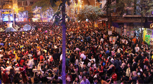 Tại khu phố đi bộ Hồ Gươm, hàng nghìn người đổ về phố đi bộ đón lễ giáng sinh.