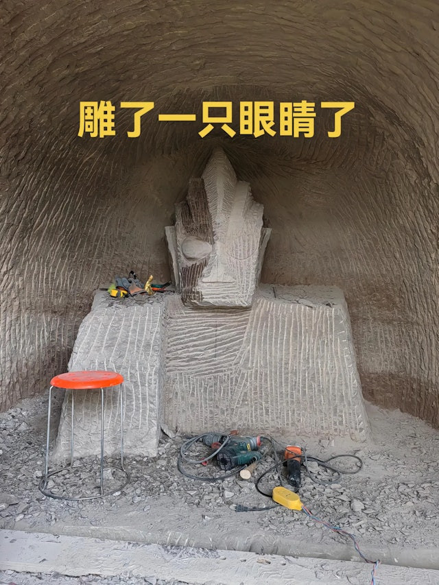 Người đàn ông này tiết lộ bản thân đã tự làm tất cả, từ dựng giàn giáo, khoét hốc đá lớn bằng búa điện, cho đến chạm khắc chi tiết bằng các công cụ chuyên dụng.