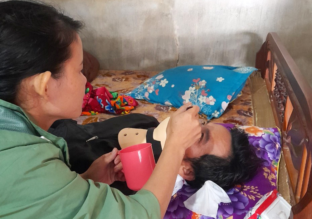 Tất tả đi lại giữa Khoa Hồi sức cấp cứu Bệnh viện Hữu nghị đa khoa tỉnh Nghệ An và Bệnh viện đa khoa huyện Thanh Chương, chị Trần Thị Thương (quê Nghệ An) không giấu nổi sự mệt mỏi, lo lắng hiện hữu trên khuôn mặt. Bất hạnh cứ liên tiếp ập tới, đẩy gia đình chị lâm vào cảnh khốn cùng.