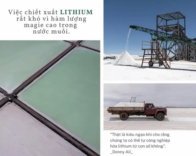 Để tìm kiếm lợi nhuận từ nhu cầu gia tăng đó, năm 2013, chính phủ Bolivia đã mở một nhà máy sản xuất lithium trên một góc của cánh đồng muối. Khu đất trắng rắn chắc trải rộng 10.000 km vuông nằm trên đỉnh Andes và cao hơn thành phố Machu Picchu của quốc gia láng giềng Peru 1km.