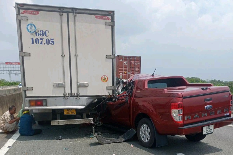 Khoảng 10h45, ô tô bán tải chạy trên cao tốc TP.HCM - Long Thành - Dầu Giây theo hướng Đồng Nai đi TP Thủ Đức. Khi ô tô bán tải chạy qua khỏi trạm thu phí Long Phước khoảng 500m (thuộc địa phần TP Thủ Đức) thì tông mạnh vào đuôi xe tải chạy cùng chiều phía trước.