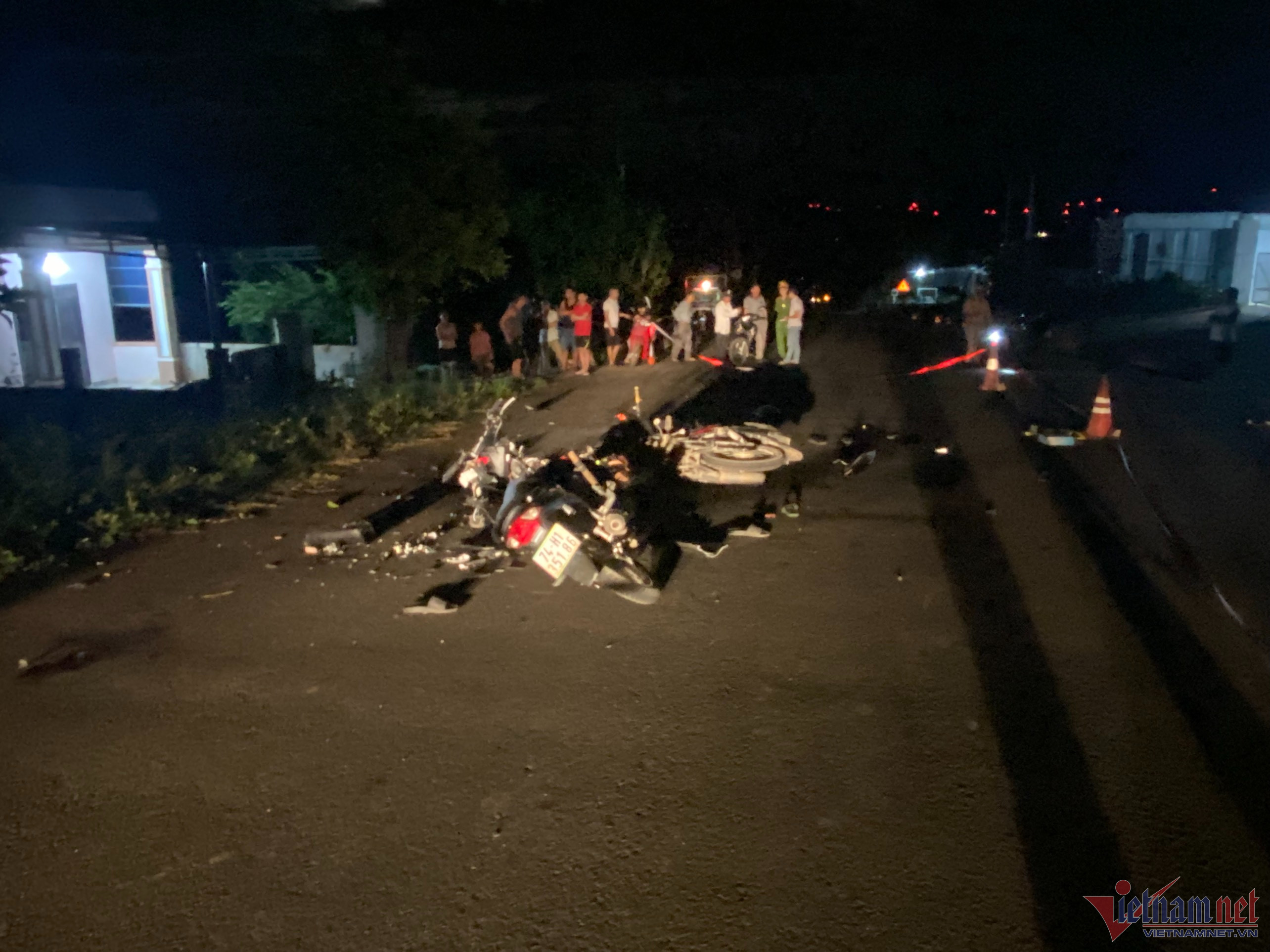 Khi đến đoạn đường trên, xe máy này va chạm mạnh với xe máy BKS 74H1-351.86 (chưa rõ người điều khiển) đi theo hướng ngược lại.