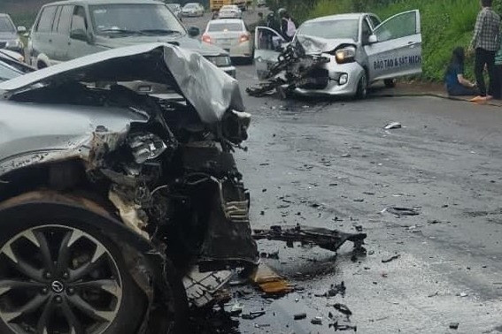 Về phần xe Mazda CX5, sau cú tông mạnh, các túi khí bung ra, tài xế xe này cũng bị thương và được đưa vào bệnh viện cấp cứu. Tại hiện trường, cả hai ô tô đều bị bể nát phần đầu.