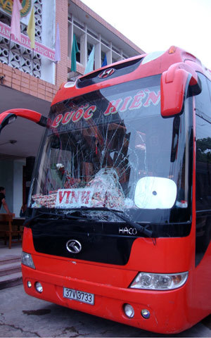 | Chiếc xe khách gây tai nạn. |