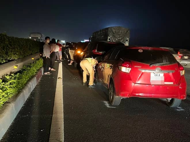 Theo chỉ huy Đội Tuần tra kiểm soát giao thông đường bộ cao tốc số 3 (Đội 3, Cục Cảnh sát giao thông), khoảng 21h tối 8/4, tại Km 200+400 đường cao tốc Pháp Vân - Cầu Giẽ xảy ra vụ tai nạn giao thông liên hoàn giữa 4 ô tô.