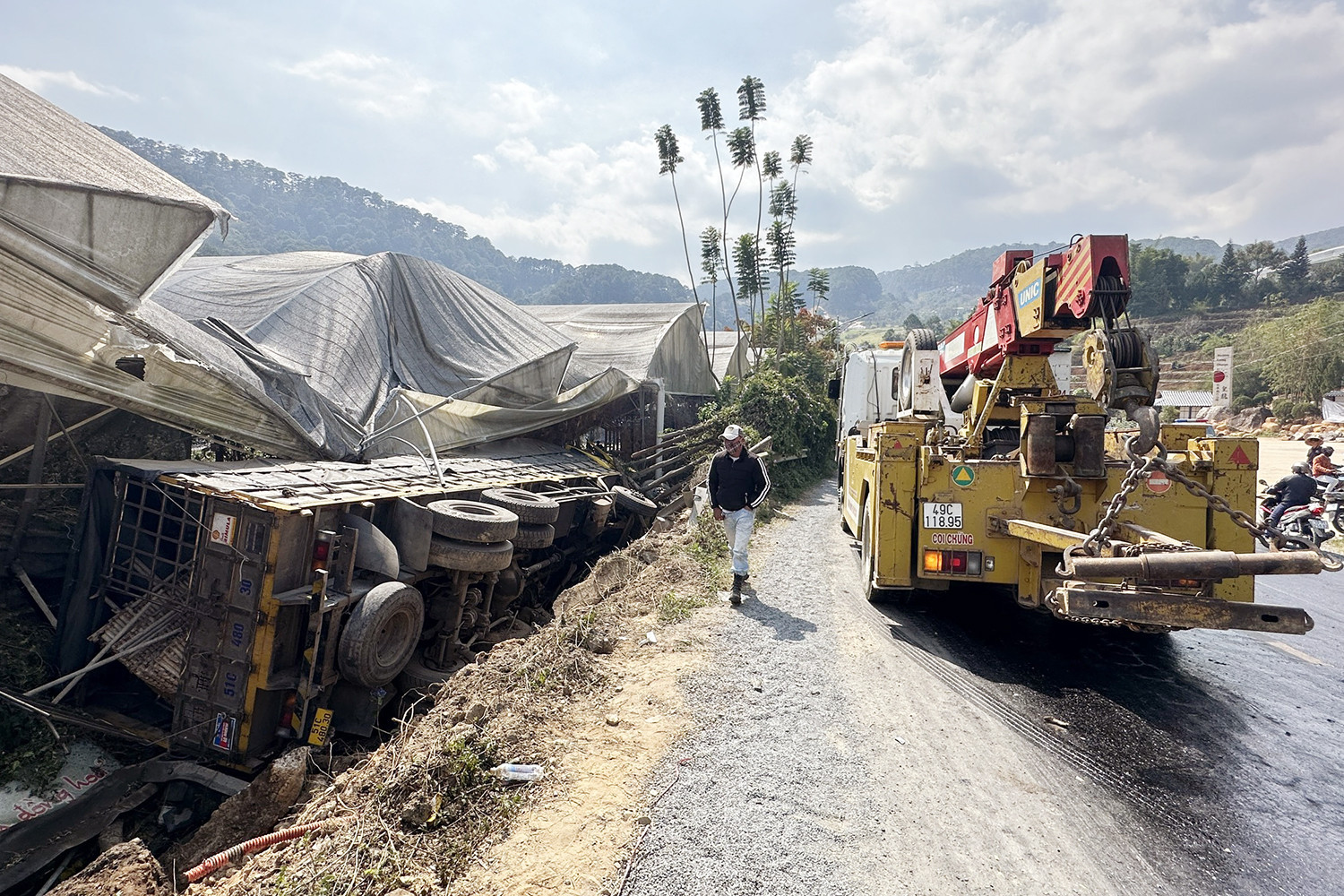 Trưa 3/3, tài xế Trương Trung Quý (49 tuổi) lái ô tô tải mang biển số TP.HCM theo hướng trung tâm TP Đà Lạt về huyện Đức Trọng. Khi đổ dốc đèo Mimosa, xe tải bất ngờ chao đảo tông mạnh vào taxi do anh Trương Văn Tâm (29 tuổi) đi phía trước, hất văng xe này vào mương bên đường, rồi đâm vào ô tô của chị Phạm Thị Phương Hoa (27 tuổi).