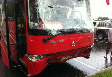 Tại hiện trường, cả 3 xe ô tô đều bị hư hỏng, xe khách 73L – 5293 chạy ở giữa bị hư hỏng nặng nhất.