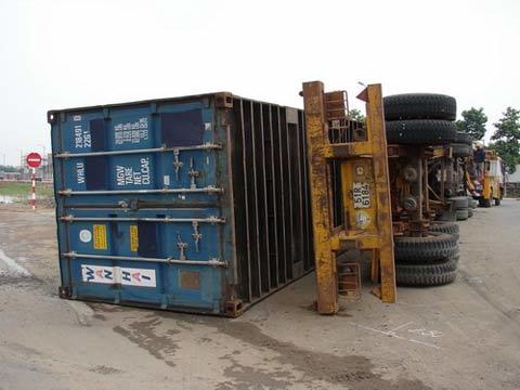 | Đầu kéo chở container lật trên Liên tỉnh lộ 25B |