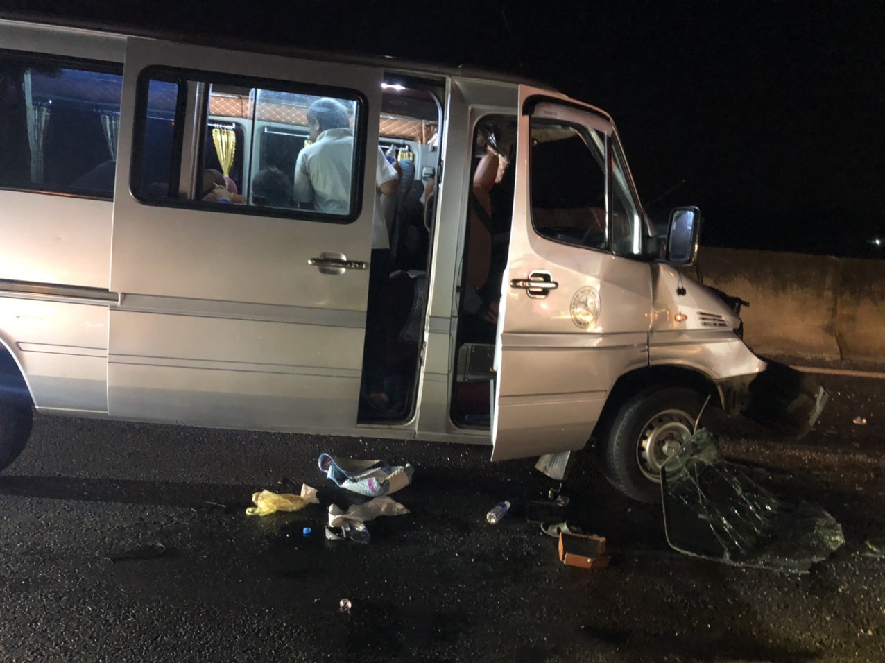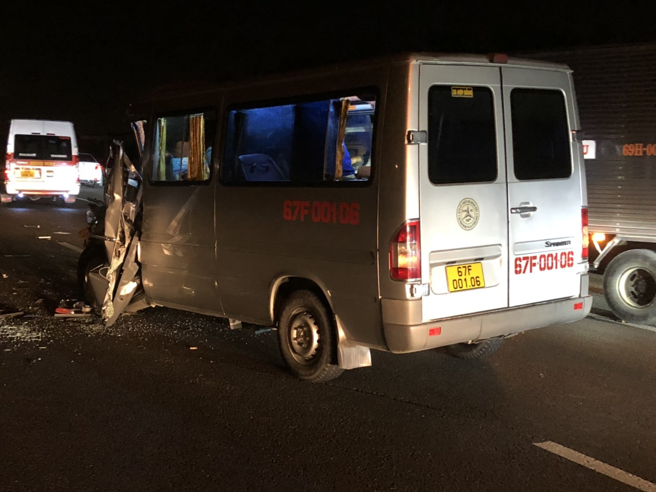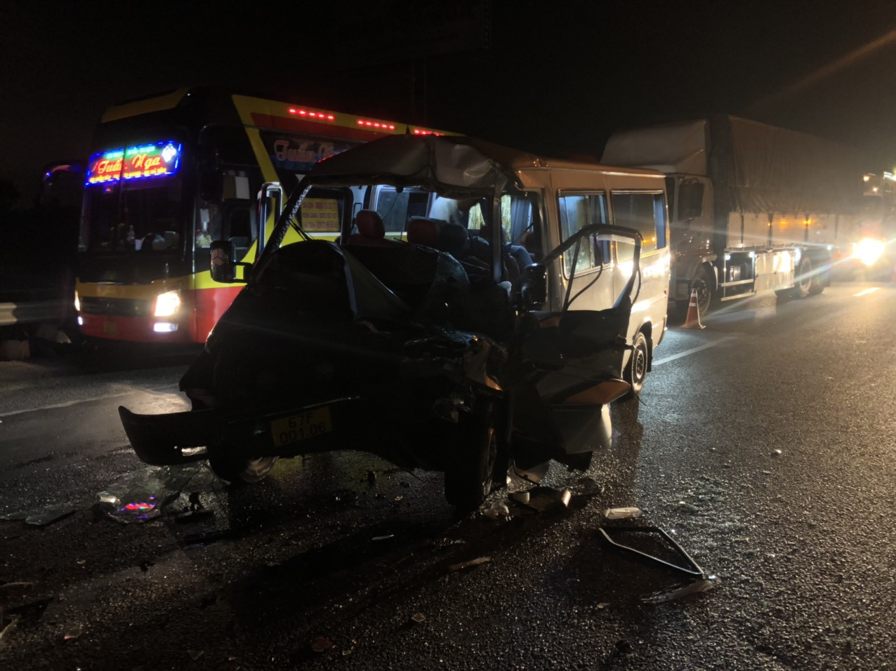 Thời điểm có mặt, đơn vị phát hiện ô tô khách loại 16 chỗ BKS: 67F-001.06 nằm giữa cao tốc đã bị nát phần đầu. Người điều khiển phương tiện là ông Nguyễn Hồng Hoàng (SN 1972, quê An Giang) gục trong cabin và tử vong tại chỗ.
