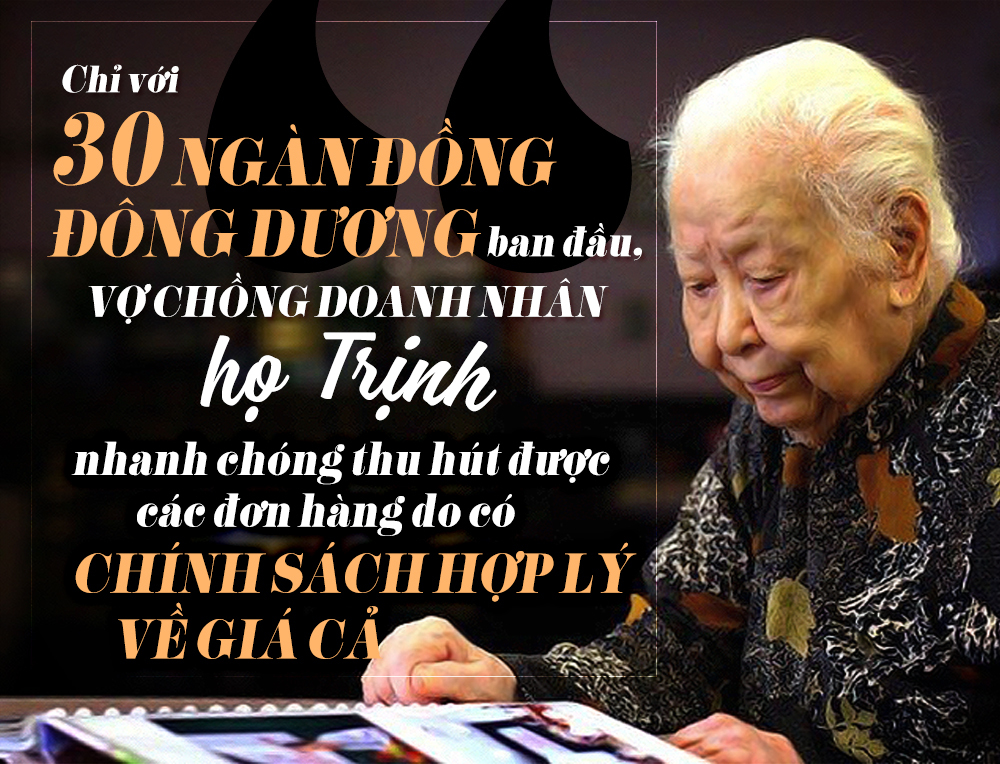 Chỉ với 30 ngàn đồng Đông Dương ban đầu, vợ chồng doanh nhân họ Trịnh nhanh chóng thu hút được các đơn hàng do có chính sách hợp lý về giá cả.