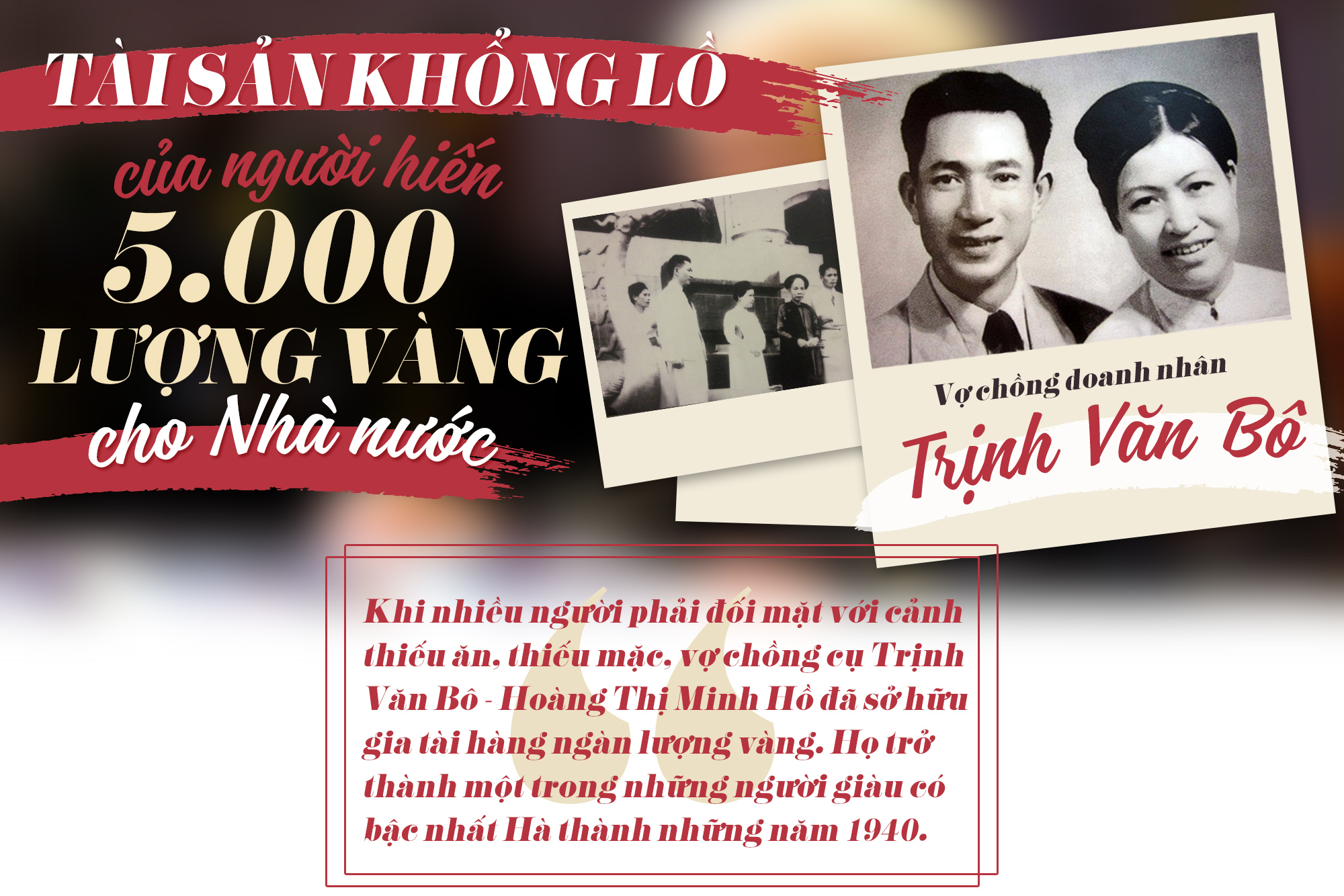 Năm 1945, hưởng ứng lời kêu gọi của Chủ tịch Hồ Chí Minh, gia đình doanh nhân Trịnh Văn Bô (Hà Nội) ủng hộ 5.147 lượng vàng giúp chính phủ mới giải quyết khó khăn tài chính sau cách mạng tháng 8.