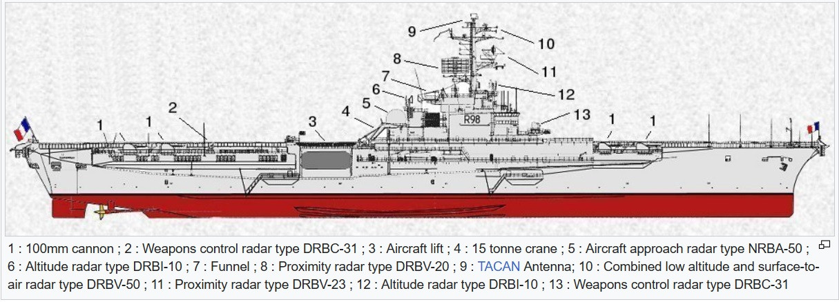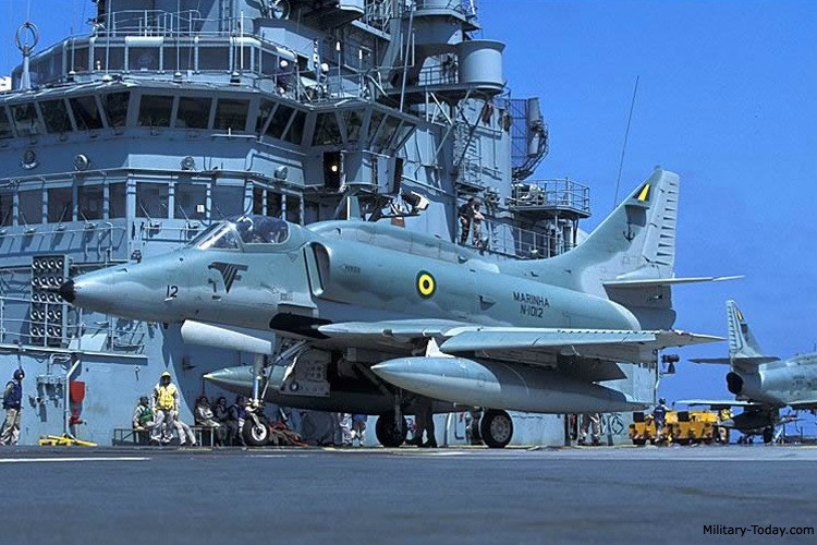 Theo trang Military Today, Sao Paulo (tên khác là Foch) thuộc lớp Clemenceau từng phục vụ trong Hải quân Pháp từ năm 1963. Khi Pháp loại biên tàu vào năm 2000, Brazil đã mua lại và đặt tên là Sao Paulo. Tàu dài 265m; sườn ngang rộng nhất là 31,7m; mớn nước 8,6m. Trọng tải tối đa lên tới 34.000 tấn.