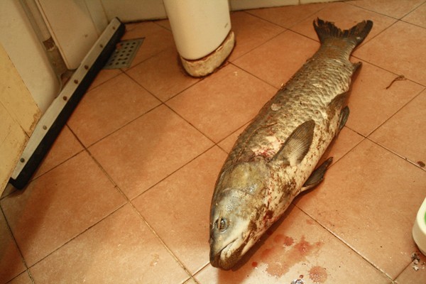 Con cá nặng gần 40 kg, nhà hàng mua con cá này đã xẻ thịt bán với giá 450.000-500.000 đồng/kg.