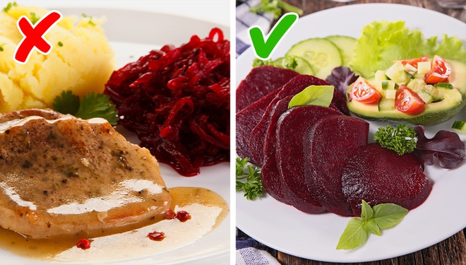 Củ cải đường là một nguồn vitamin và khoáng chất tuyệt vời. Nó cũng chứa nhiều oxit nitric mà cơ thể bạn sẽ chuyển đổi thành nitrat để giúp giảm huyết áp. Nhưng chất này sau đó có thể được chuyển thành nitrosamine cũng được tìm thấy trong thịt, có nghĩa là nó có thể tăng nguy cơ gây ung thư thực quản hoặc dạ dày. Bởi vì điều này, tốt nhất là tránh kết hợp một lượng lớn củ cải đường và thịt đỏ khi nấu ăn.