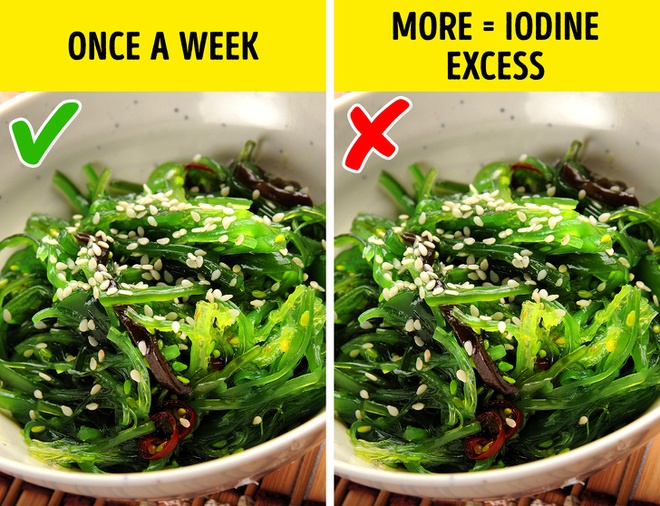 Rong biển là một ví dụ hiếm hoi của một loại sản phẩm phi động vật nhưng lại giàu vitamin B12, làm cho nó trở thành một thứ thay thế tuyệt vời cho thịt trong chế độ ăn chay. Nó cũng đã được quảng bá như một siêu thực phẩm có thể giúp bạn giảm cân nhờ hàm lượng i-ốt cao và chất xơ. Nhưng một lượng i-ốt cao có thể dẫn đến các vấn đề về tuyến giáp và thậm chí... tăng cân. Rong biển cũng có thể chứa một lượng lớn kim loại nặng tùy thuộc vào nơi nó được trồng và phát triển.