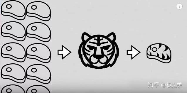 Bởi vậy, nếu bạn muốn thuần hóa một con hổ để ăn thịt hổ, bạn phải cho nó ăn 10 miếng thịt bò trước khi ăn một miếng thịt hổ. Trong khi đó chúng ta có thể ăn hết cả 10 miếng thịt bò với lượng calo gấp 10 lần 1 miếng thịt hổ!