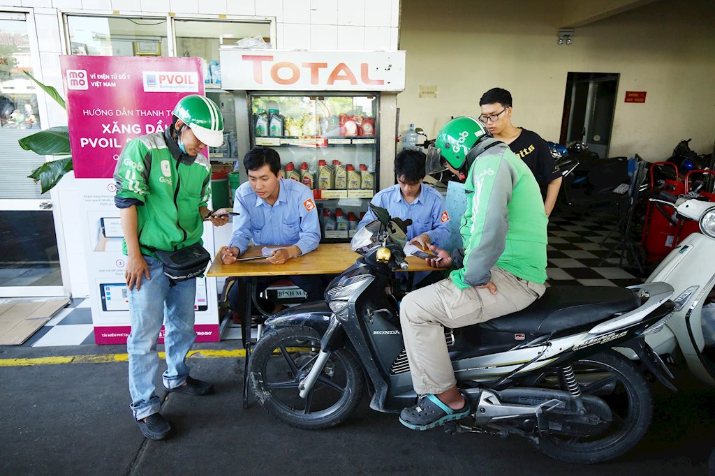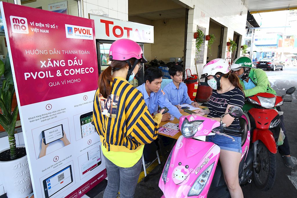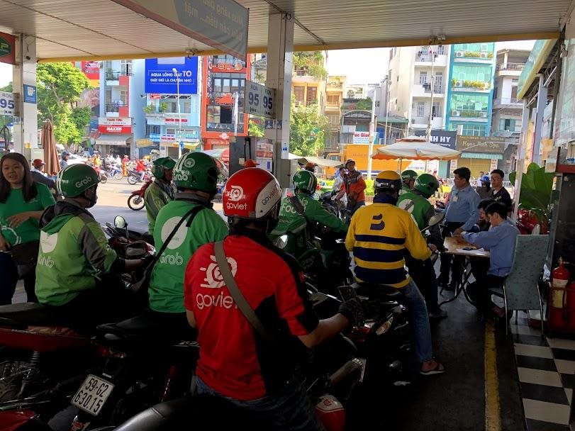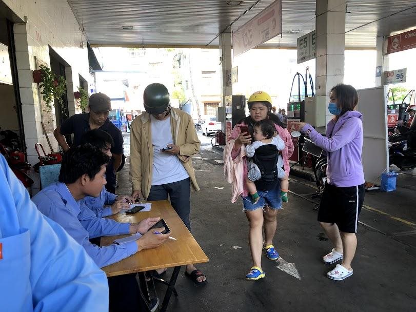 Tại các cây xăng này, trung bình có khoảng 40, 50 khách hàng chờ đổ xăng và trả bằng Ví MoMo. Đa số là các tài xế chạy xe công nghệ, nhân viên văn phòng, sinh viên, có cả những bà mẹ đưa con đi gửi trẻ cũng tranh thủ ghé đổ xăng đầu ngày.