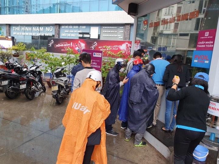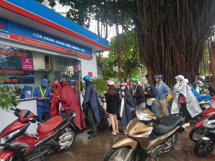 Tại Hà Nội, dù sáng nay thời tiết không được thuận lợi nhưng người dân vẫn hào hứng ‘đội mưa’ đổ xăng và xếp hàng thanh toán bằng Ví MoMo nhận hoàn tiền.