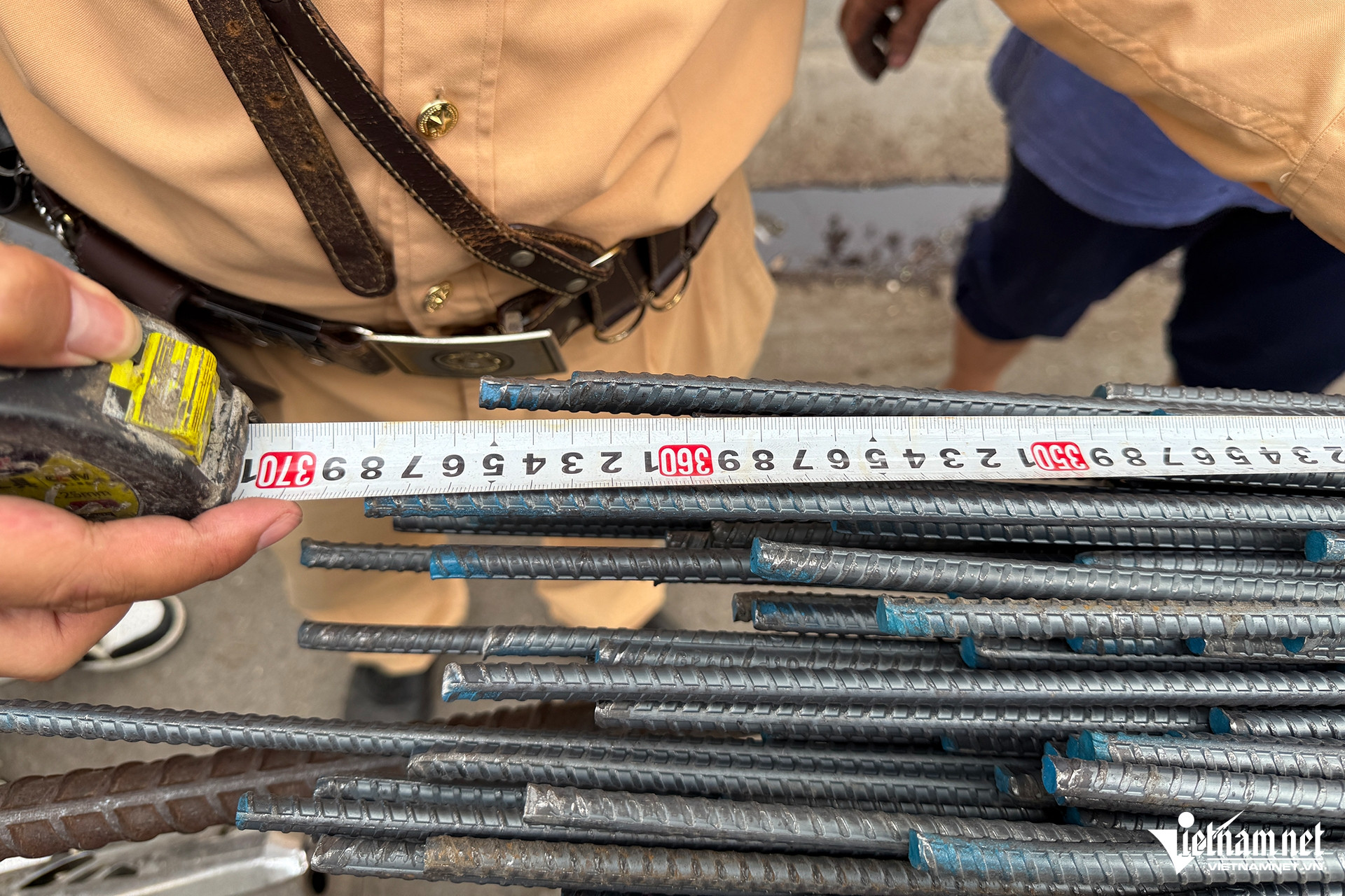 Qua kiểm tra, tài xế điều khiển phương tiện là Trần Hữu H. (SN 1979, quê tại Tuyên Quang), cảnh sát cũng xác định xe chở bó thép dài khoảng 11,7m và nặng hơn 600kg.