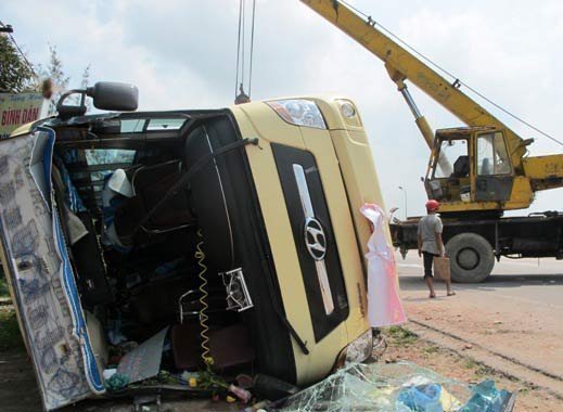 Xe khách 53S - 4689 bị lật do tài xế ngủ gật