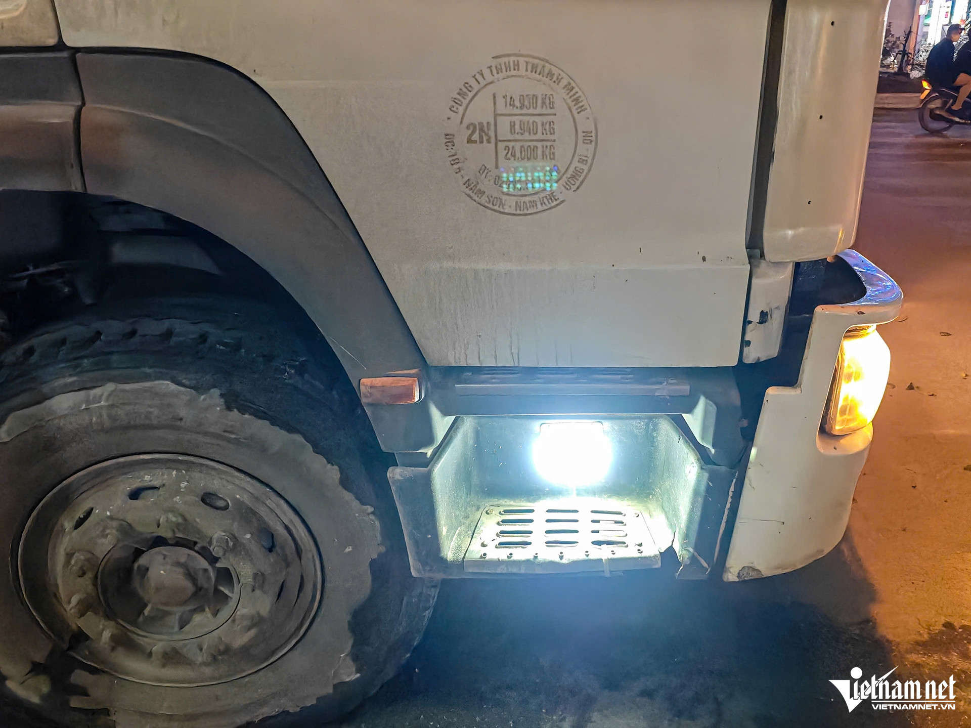 Không chỉ lắp đèn siêu sáng ở phía đầu xe, trường hợp của ô tô bồn chở bê tông còn lắp đèn rọi xung quanh phương tiện.