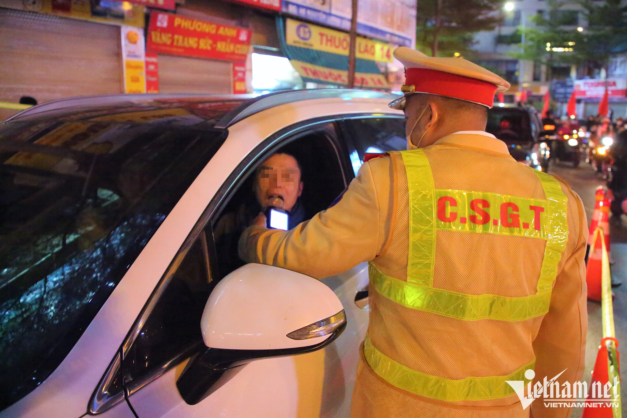 Đến 22h25, lực lượng cảnh sát dừng ô tô mang biển kiểm soát 30H- 087.XX do anh N.P.T. (SN 1997, trú tại Đông Anh, Hà Nội) điều khiển. Kết quả kiểm tra cho thấy, tài xế T. vi phạm nồng độ cồn ở mức 0,102 mg/L khí thở.