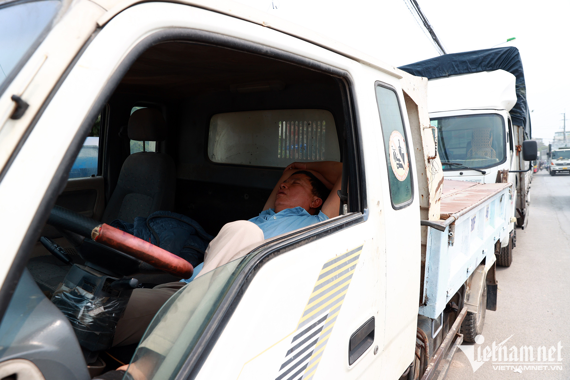 Tình trạng ùn ứ ở bên ngoài các trạm đăng kiểm tại Hà Nội đang trở nên trầm trọng khi 22 trong tổng số 31 trạm đăng kiểm trên địa bàn đã dừng hoạt động. Hình ảnh tại đường Phan Trọng Tuệ, ôtô xếp hàng dài chờ vào trạm đăng kiểm 2906VAnh Minh (bên phải), lái xe Xí nghiệp Môi trường số 7 Hà Nội cho biết: "Tôi xếp hàng từ 4h sáng, khi trạm nghỉ ăn trưa xe tôi mới nhích lên tới cổng, hy vọng trong ngày hôm nay kiểm định xong chiếc xe chở rác của cơ quan".Bác Nguyễn Văn Long mệt mỏi nằm trên xe, kiên trì xếp hàng chờ vào làm thủ tục đăng kiểm: "Chiếc xe tải của tôi chỉ có niên hạn 1 năm sử dụng, vừa rồi tôi đem đi sửa hết gần chục triệu đồng. Vì là xe cũ nên 3 tháng lại xếp hàng như thế này, mất nhiều công sức quá. Chắc tôi phải đổi xe sớm thôi", ông Long than thở.Tuần trước cũng xếp hàng chờ đăng kiểm nhưng không đến lượt, hôm nay anh Đinh Hào Quang cẩn thận mang cả hộp cơm đi ăn ngay trên cabin. "Xếp hàng từ đêm, hôm nay mà không xong, đến tối tôi cũng quyết ở lại chờ để đăng kiểm xong chiếc xe công ty" anh Hào Quang chia sẻ.Bên lề đường Phan Trọng Tuệ trưa 6/3 có khoảng hơn 100 ô tô nối đuôi nhau xếp hàng hướng về trạm đăng kiểm 2906V.Đi đăng kiểm từ 3h sáng, anh Phạm Xuân Thạch (áo sơ mi trắng) đang tranh thủ ăn tạm chiếc bánh mì. "Xe tôi vào tới sân trạm thì cán bộ nghỉ ăn trưa. Chắc chắn hôm nay tôi sẽ đăng kiểm xong chiếc xe của công ty", anh Thạch vui vẻ.