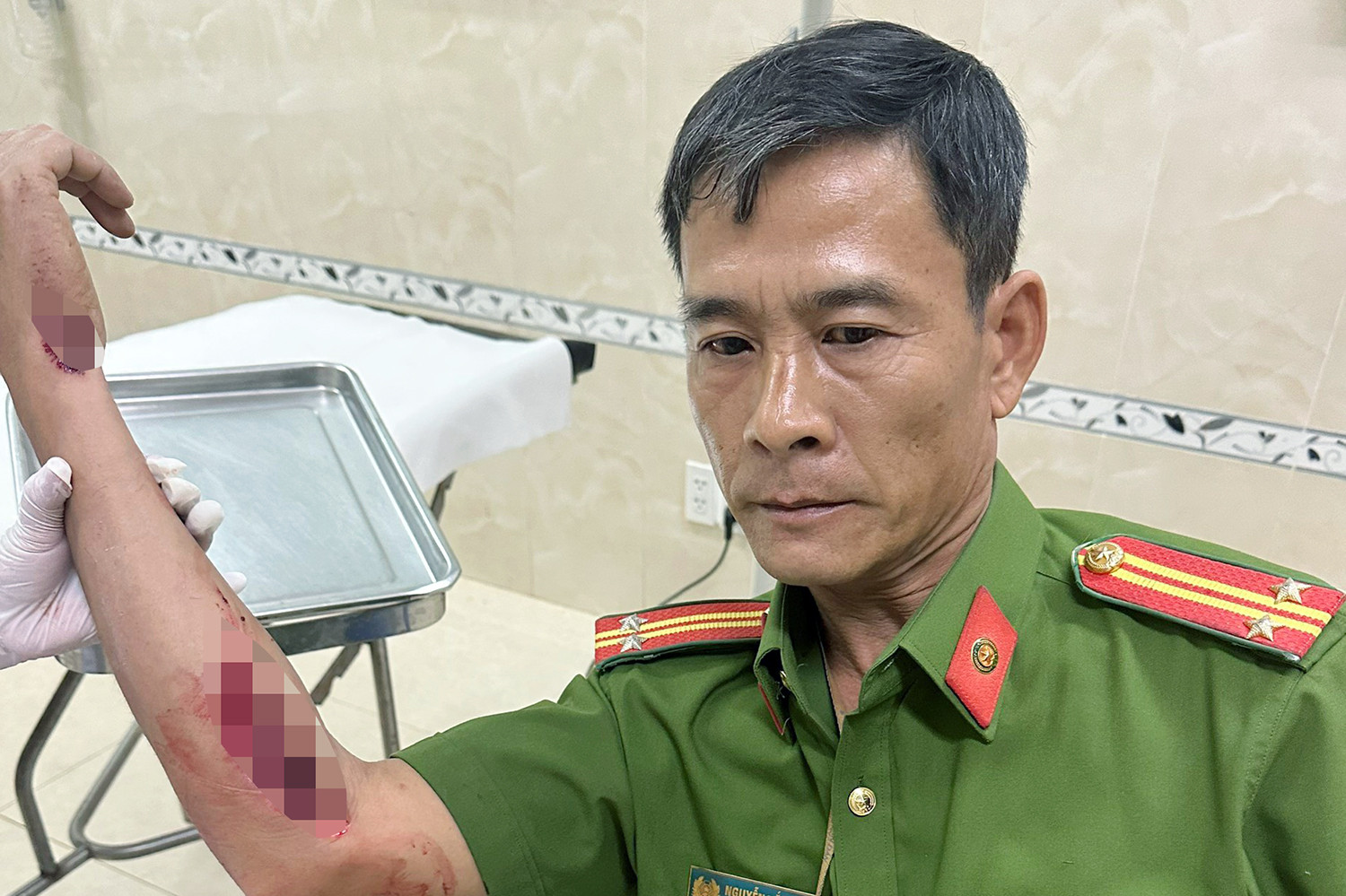 Trung tá Thủy ngã xuống đường, bị thương ở tay phải, chân trái, trong đó vết thương ở cánh tay phải dài 8cm, mất nhiều máu, phải vào viện.