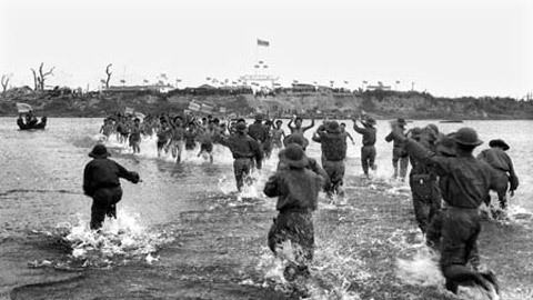 khoác vai nhau đầy hòa hữu tại chốt giáp ranh vùng giải phóng Quảng Trị năm